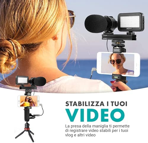 Included in the Movo V7+ YouTube Starter Kit are a sturdy and adjustable tripod, versatile phone grip, high-quality stereo microphone, powerful LED light, and convenient remote control. These accessories work seamlessly together to provide you with the perfect setup for filming your content no matter where you are.